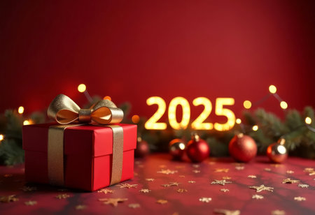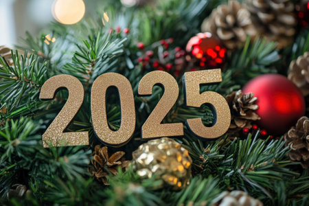 New Year 2025 background. Number of the coming year in Christmas decoration.