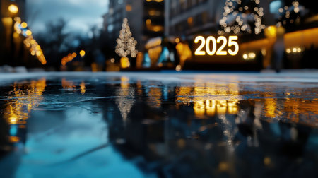 Vibrant lights illuminate the numbers for 2025 creating a festive atmosphere for New Year celebrations.