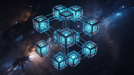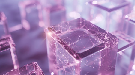 abstract translucent cubes blockchain technology background