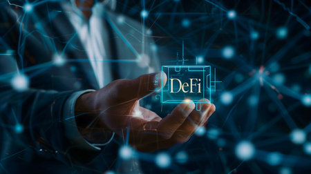 DeFi Decentralized Finance. Technology blockchain cryptocurrency concept