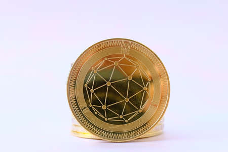 Digital currency physical gold bitcoin coin on white background. Cryptocurrency concept.