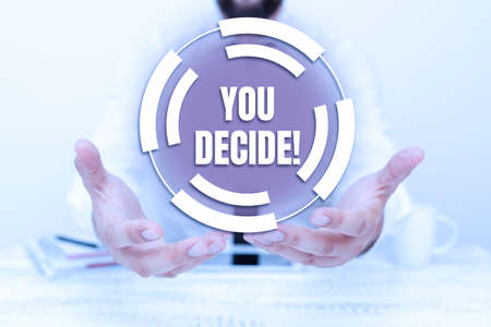 Sign displaying You Decide. Business idea giving a chance to somebody to decide over a set of choices Presenting Communication Technology Smartphone Voice And Video Calling