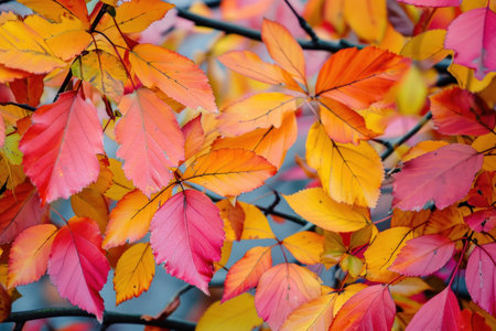 autumn background colorful leaves Rowan on the branches beautiful decorative effect close-up
