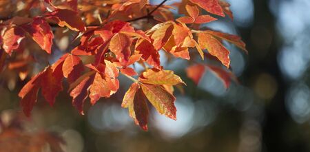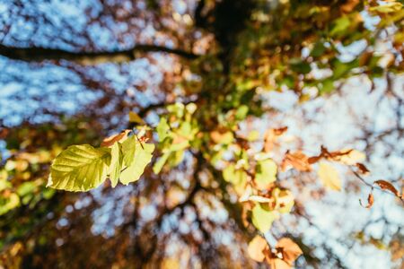 Colorful leaves on a tree in autumn, park flair and blurry background