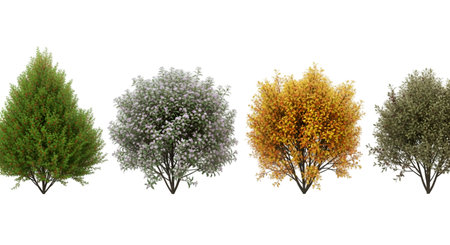 With showing four different trees with varied foliage colors. High resolution image suitable for commercial use. High quality image with transparent background support.