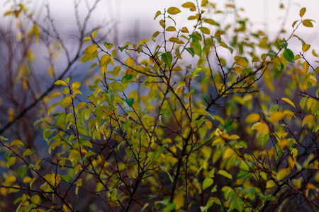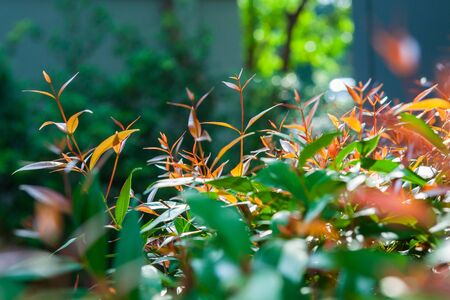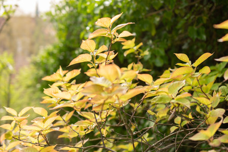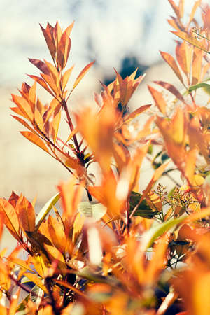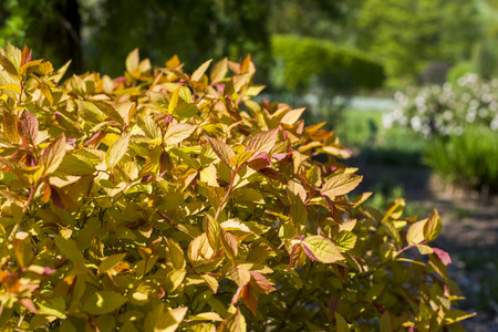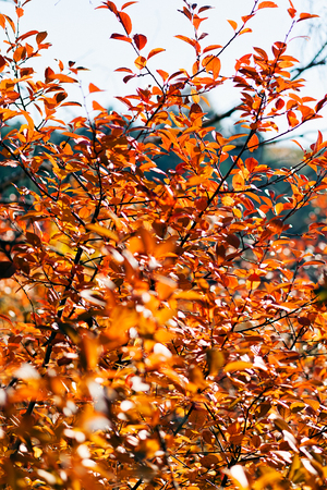 ornamental shrub in autumn with golden foliage,note shallow depth of field
