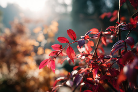 Vibrant autumn leaves are bathed in warm sunlight, creating a beautiful scene of seasonal change and natural beauty.