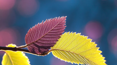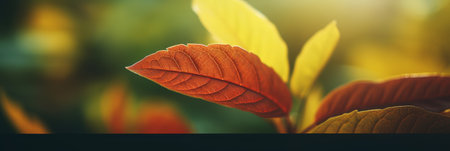 A close up of a leaf with red and yellow leaves, AI