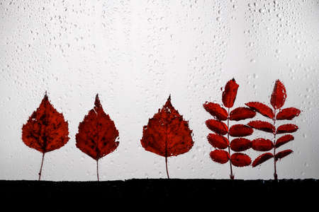 autumn leaves for rainy glass. concept of fall season.