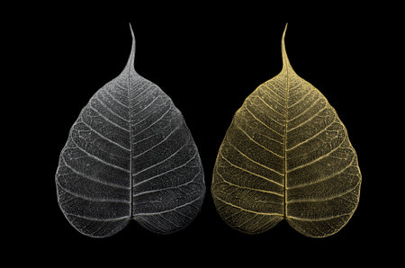 Silver and golden vein leaves of Bodhi on back background