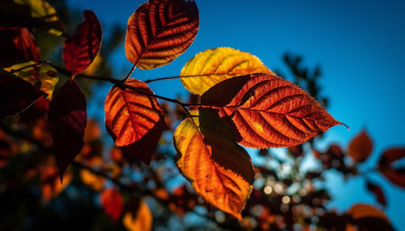 Vibrant autumn maple tree, multi colored leaves, beauty in nature generated by artificial intelligence