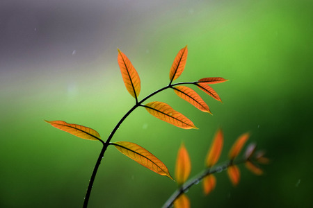 Branch with a green leaves on a colour background