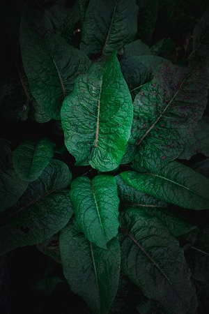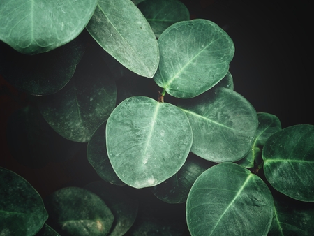 Low key of the peak green plant leaves, Selective focus.