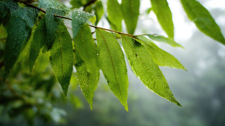 Vibrant green leaves unfurling in soft light with cinematic perspective