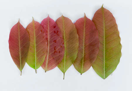 Young red color leaves on white background