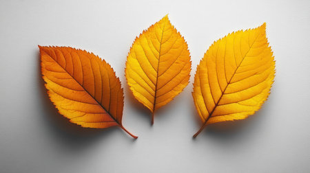 Three colorful autumn leaves rest elegantly on a light surface, celebrating fall's beauty.