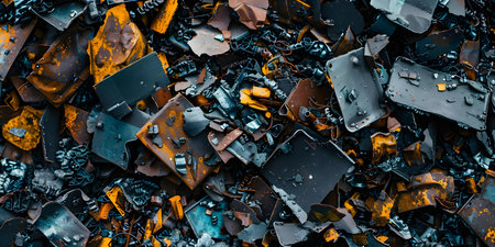 Metallic Scraps in a Yard: Embracing the Concept of Material Reincarnation through Recycling. Concept Metallic Scraps, Yard Recycling, Material Reincarnation, Sustainable Practices