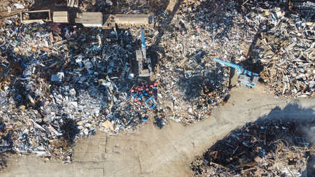 Metallic scraps in a recycling yard ready to be transformed into new products through material reincarnation. Concept Recycling Yard, Metallic Scraps, Material Reincarnation