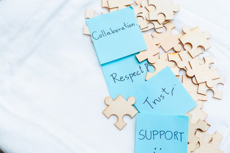 Sticky notes convey messages of support and trust representing teamwork in a professional office setting.
