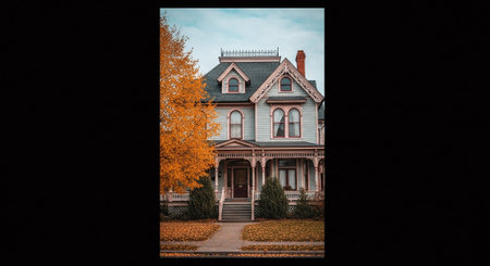 Vintage postcard with the image of a beautiful house in autumn