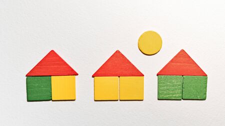 colorful wooden houses on white , the concept of finance concept