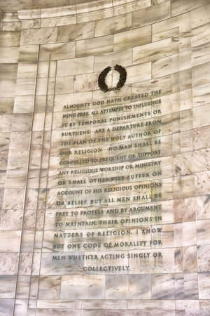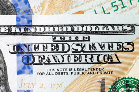 close-up image of a fragment of the Declaration of Independence on the back of a US two dollar bill