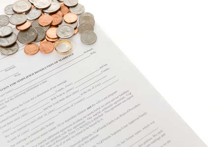 Property release letterhead and gold-colored pen on gray table. A printed copy of a blank document. Selective focus.