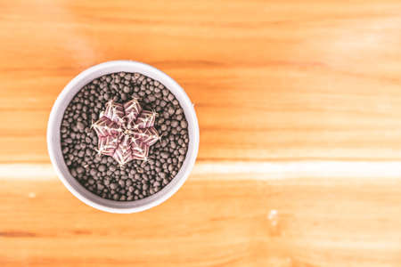 Gymno Bardianum cactus in black pot on table background