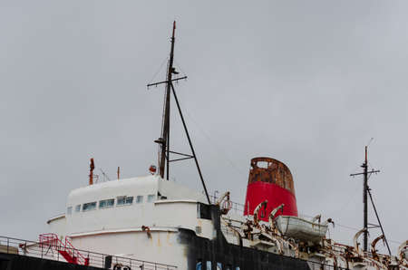 Llanerch-y-Mor, UK : Jul 31, 2019: Passenger ferry steam ship, TSS Duke of Lancaster operated from 1956 to 1979. It was then permanently beached to operate as a tourist attraction & is now abandoned.