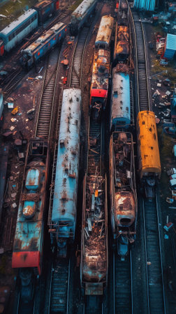 An artistic representation of a scrapyard as seen from above, using generative AI techniques.