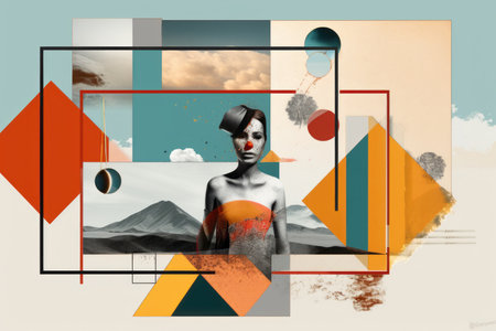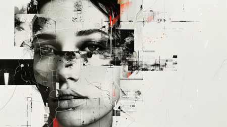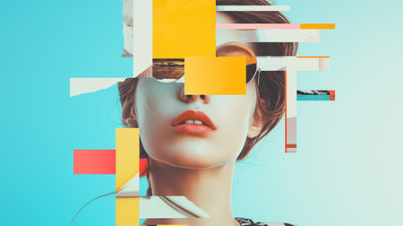 Abstract Digital Art Portrait of a Woman with Geometric Fragments and Mixed Media Elements