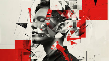 Abstract Geometric Portrait of a Person with Red and Black Accents