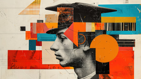 Abstract Profile Portrait of a Man in Uniform with Geometric Shapes and Bold Colors
