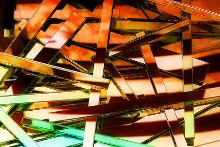 This vibrant abstract image features fragmented glass pieces in geometric shapes. The colorful gradient background enhances the modern artistic design, creating a striking visual.