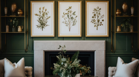 A stylish arrangement featuring art, books, and plants that brings warmth to any space. Embrace modern aesthetics with this design. Generated A.I.