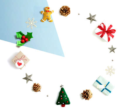 Christmas, winter, new year concept. Flat lay, top view, copy space.