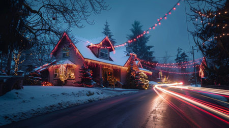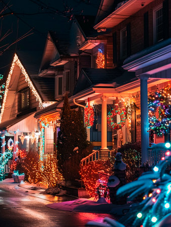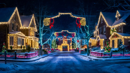 Take a stroll through a winter wonderland as this charming neighborhood street illuminates the night with festive holiday lights, spreading joy and warmth to all who pass by.
