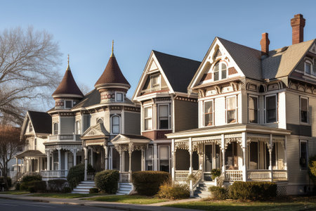 a row of grand victorian homes, with their wrap-around porches and intricate details, created with generative ai