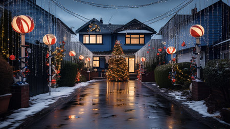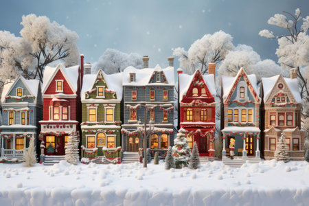 Quaint Victorian houses adorned with Christmas decorations AI generated illustration