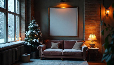 Modern Christmas living space. A cozy holiday corner with a stylish armchair, soft lighting, and a beautifully decorated tree. Perfect for modern holiday inspirations.