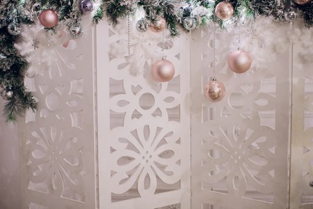 Christmas and New Year background. Festive decorations on the background of a Christmas tree.