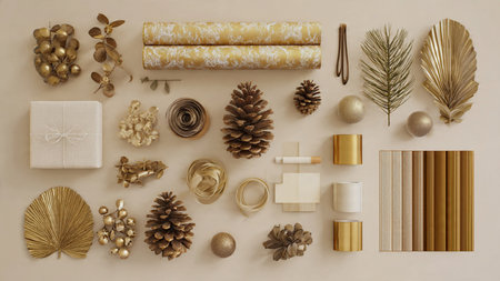 Minimal festive border featuring soft pine textures and delicate metallic ornaments.