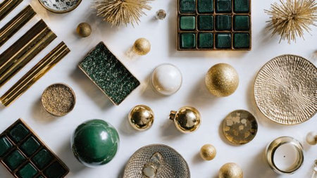 Red monochrome backdrop featuring small elegant gold metallic touches.