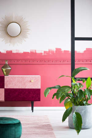 Panorama of contemporary room with big decorative mirror