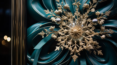 Christmas tree decorated with golden snowflakes and garlands, close up