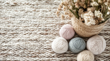 Soft, pastel yarn balls arranged on a cozy, knitted background. Perfect for showcasing textiles, crafting, and knitting inspiration in a homely setting.