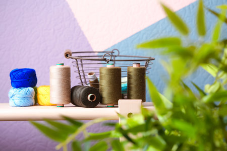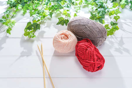 Equipment for knitting and crochet (colorful cotton yarn, ball of threads)