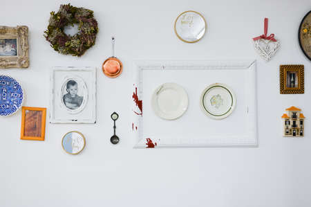 Vintage interior decoration elements on the white wall
