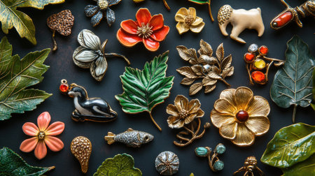 A stunning assortment of colorful brooches featuring flowers, leaves, and animals, perfect for fashion enthusiasts and jewelry designers seeking unique inspiration.