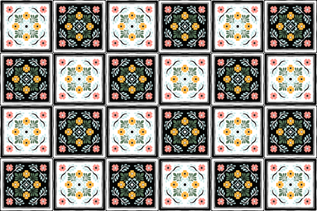 Panorama of Ceramic tile White and black pattern texture and background seamless